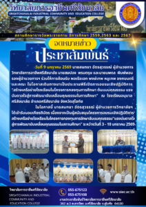 ในโอกาสนี้ นายสนทยา ฉัตรสุวรรณ์ ผู้อำนวยการวิทยาลัยฯได้เข้ารับมอบเกียรติบัตร เนื่องจากเป็นผู้สนับสนุนโครงการอบรมเชิงปฏิบัติการสร้างเครือย่ายโรงเรียนในโครงการกองทุนภารอักษาอันแบคุณธรรม”แรงบันดาลใจสู่การพัฒนาขับเคลื่อนคุณธรรมในสถานศึกษา” ระหว่างวันที่ 3 – 10 มกราคม 2569