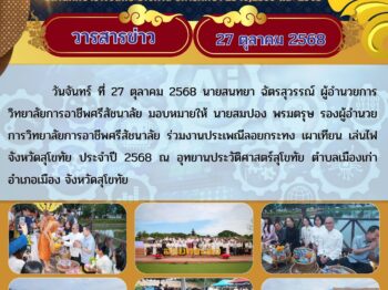 ยินดีต้อนรับเข้าสู่เว็บไซต์ วิทยาลัยการอาชีพศรีสัชนาลัย Welcome to Srisatchanalai Industrial community and education college สถานศึกษารางวัลพระราชทาน ปีการศึกษา 2548,2559,2563และ 2567